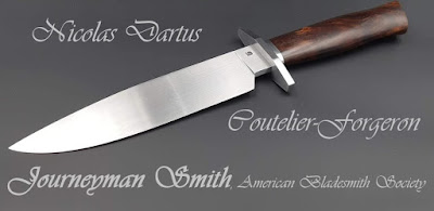 Après une carrière de marin puis dans la sécurité informatique, Nicolas Dartus décide à 28 ans de devenir coutelier-forgeron. Le métier le passionnait déjà depuis l’enfance « quand j’étais petit, je regardais des magazines et des vidéos, ça m’intriguait, je trouvais ça presque hypnotique, j’ai essayé une fois et puis c’était parti ». S’il travaille avec des outils et du matériel modernes, les gestes du quotidien eux sont les mêmes que les premiers couteliers « on martèle et forge le métal comme les anciens, avec les mêmes étapes qu’eux pour arriver jusqu’au couteau. On ne fait que perpétuer leurs gestes et leur savoir ».